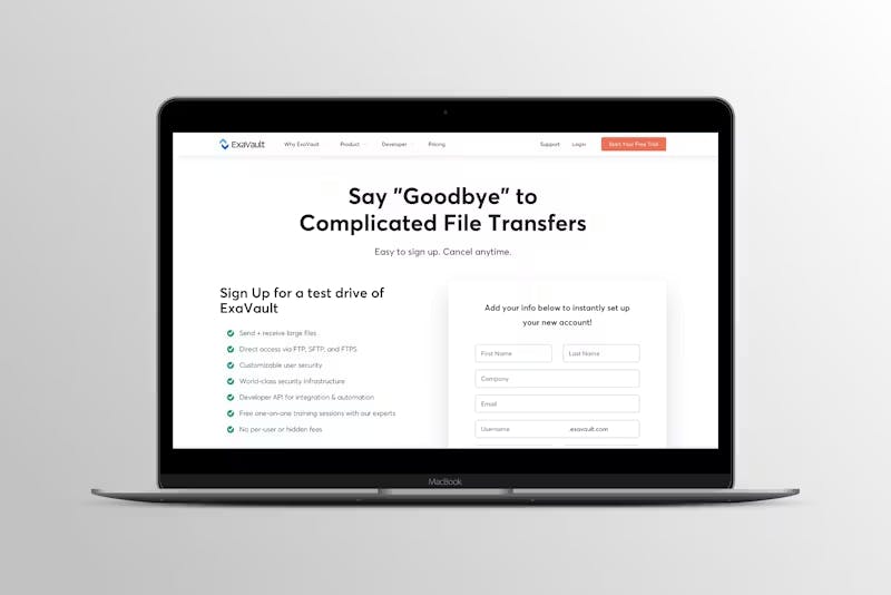 ExaVault's data transfer solutions are a new answer to an old problem - how to get data from A to B. They've taken tried-and-true FTP/SFTP and built a modern interface on top, enabling companies across the globe to receive, send, and collaborate securely across technologies, platforms, and time zones.